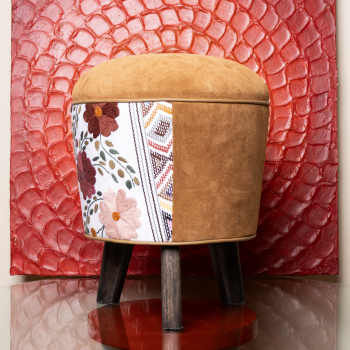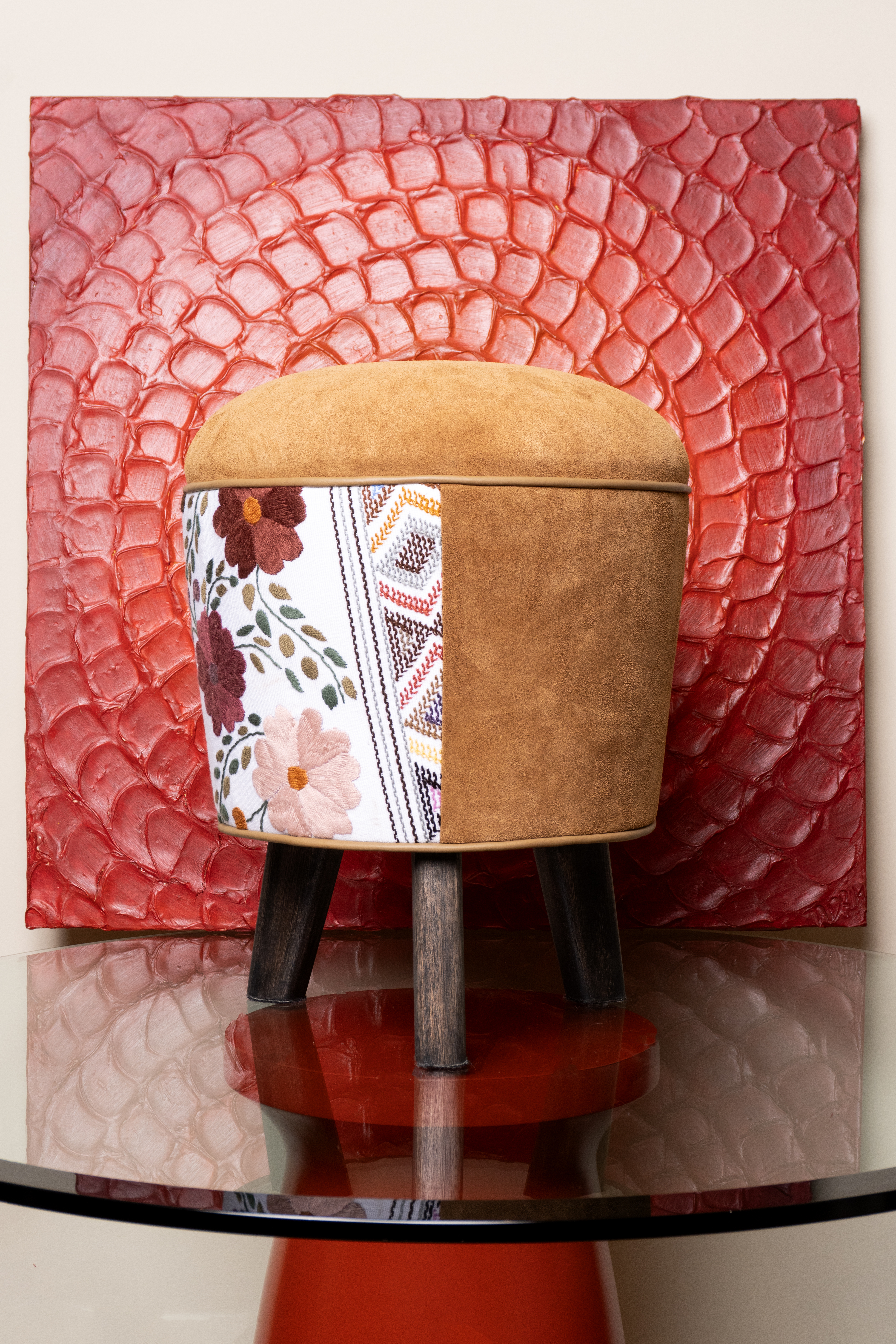 Produzidos com tecido de algodão, couro e camurça bovinos, madeira.