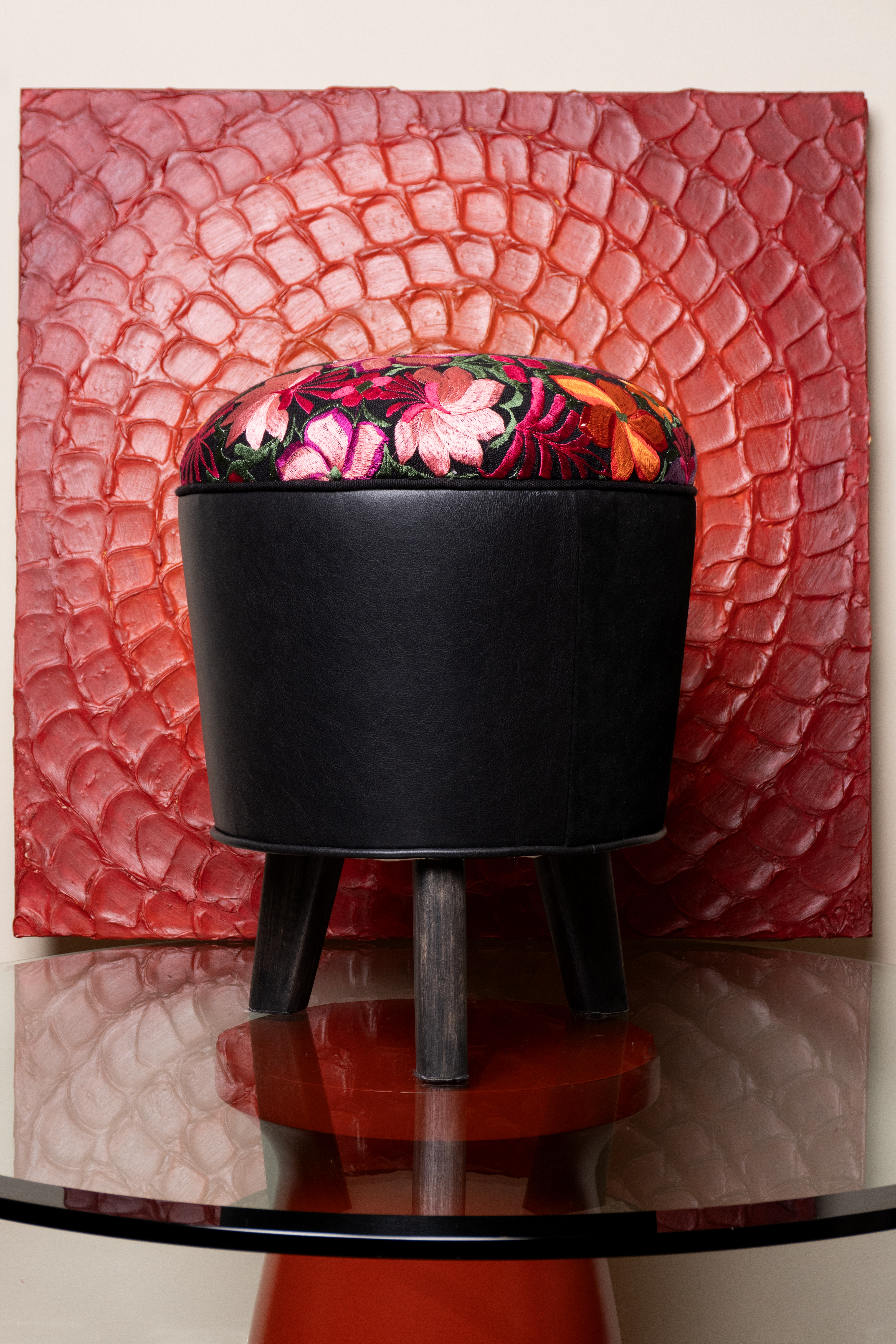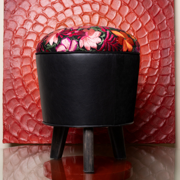 Produzido com tecido de algodão, couros bovinos, madeira.