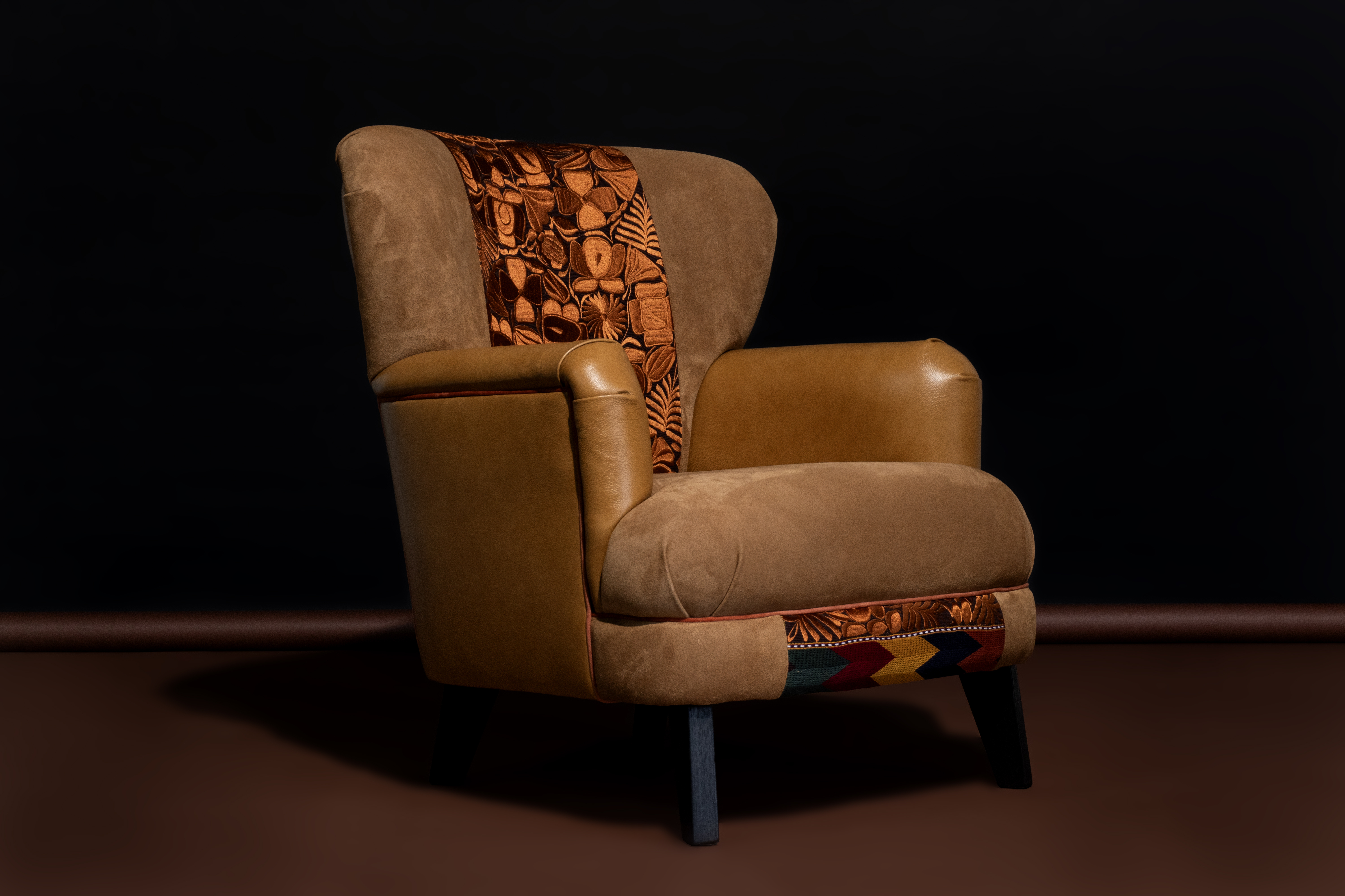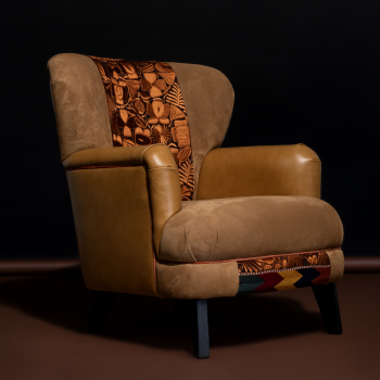 Produzida com tecido de algodão e couros bovino.